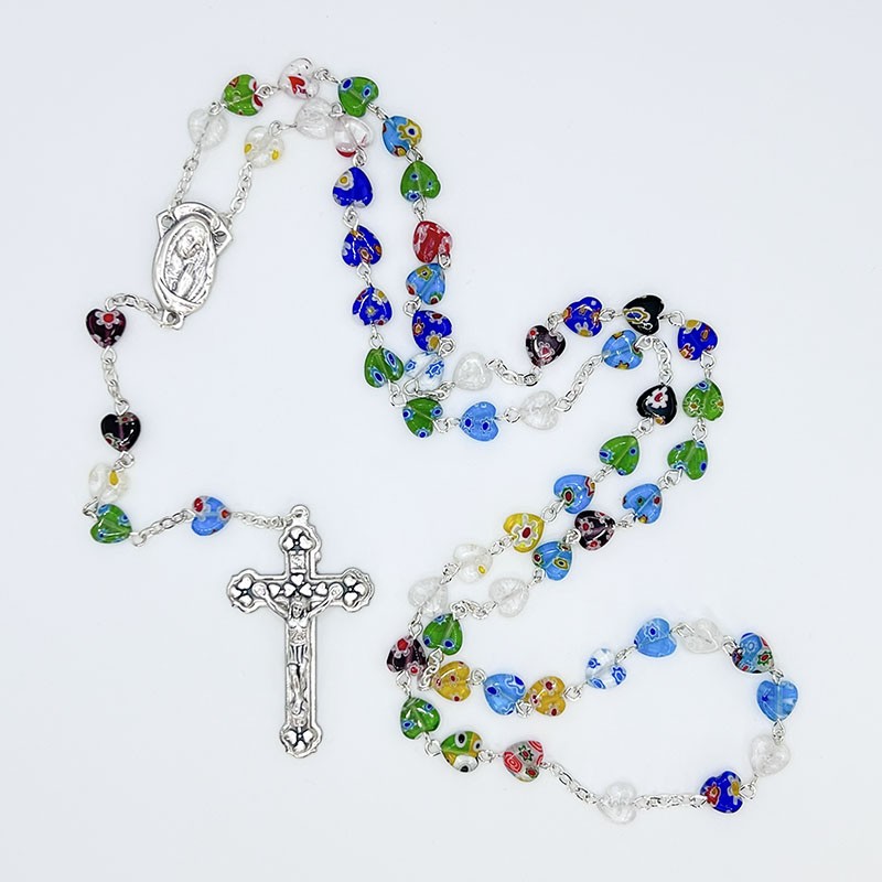 El cristal de Murano es reconocido por su tradición y belleza, convirtiendo este rosario en una opción especial tanto para la oración diaria como para quienes buscan una pieza distintiva. Con una longitud total de 50 cm, es un rosario cómodo de utilizar, con una presencia equilibrada y refinada.