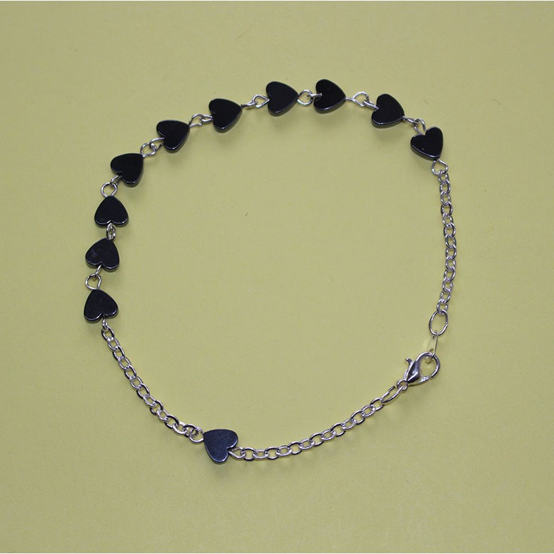 Pulsera elaborada con cuentas en forma de corazón de hematite natural. Tamaño de las cuentas: 7 mm. Longitud total: 22 cm.