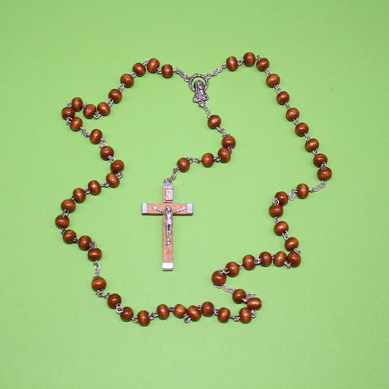 Este rosario de madera redondo natural es una pieza tradicional y ligera, ideal para acompañar la oración diaria. Está elaborado con cuentas redondeadas de madera natural de 7 mm, que aportan un tacto cálido y una sensación de serenidad al rezar.